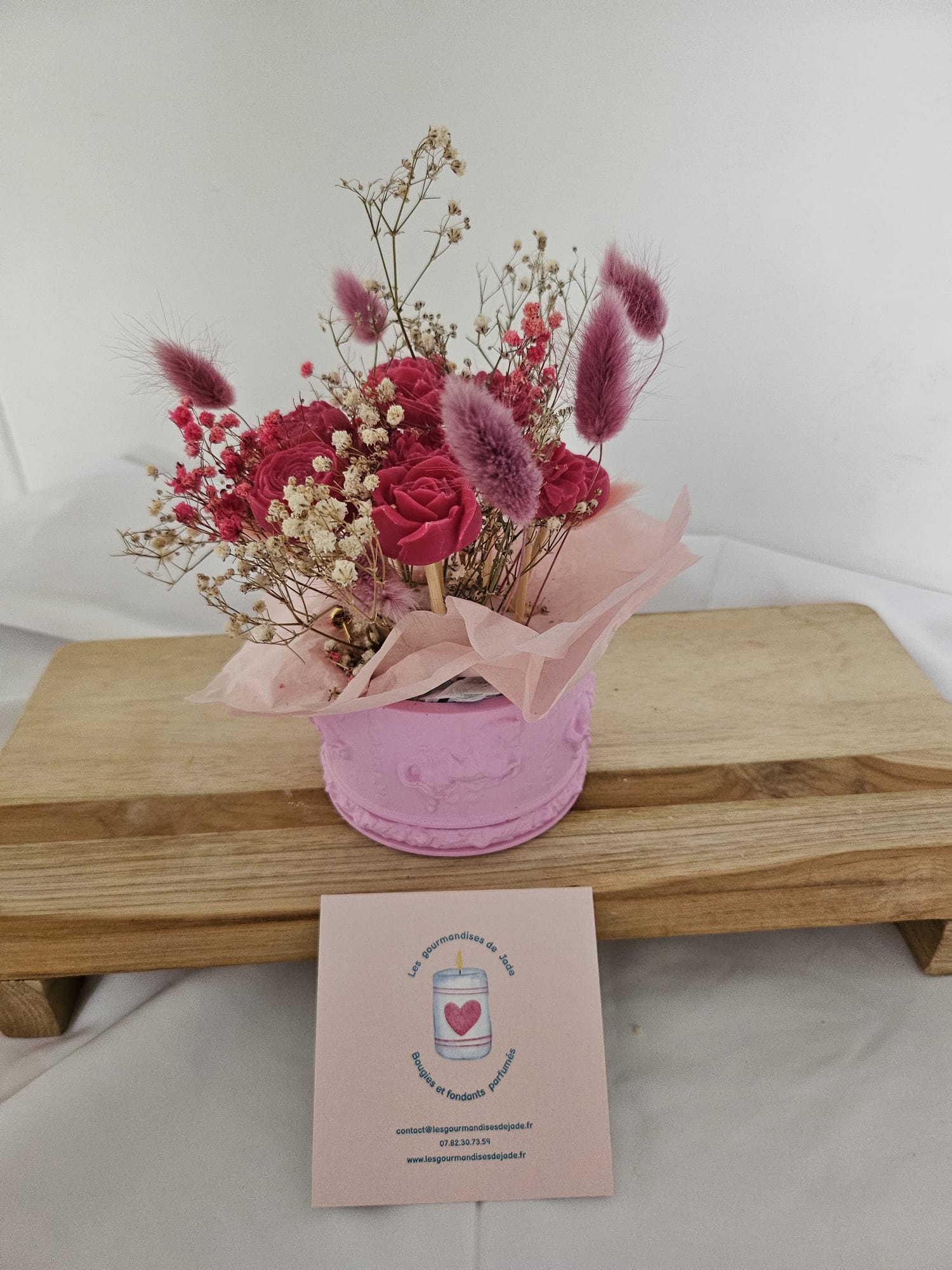 Bouquet de fondants parfumés Fleur de Cerisier – Senteurs florales. Apportez une touche douce et élégante à votre intérieur avec ce bouquet de fondants parfumés fleur de cerisier. Ses notes florales délicates et apaisantes diffusent un parfum léger, idéal pour créer une ambiance printanière et raffinée. Parfait comme décoration parfumée artisanale ou idée cadeau originale. 🌸🕯️